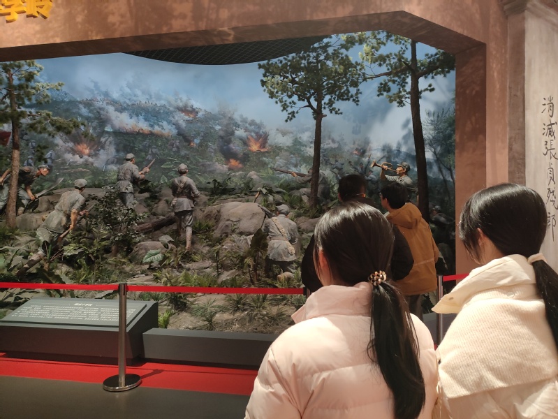 在展览的文字介绍下,队员们深入探寻漳州发展的历史脉络:从土地革命时期创建苏区的艰辛,到抗战时期芗江潮涌的救国热忱;从“红旗不倒”的解放征程,到新时代踔厉奋发的建设图景。在场景画与多媒体区,漳州人民在党的领导下追求民族独立、国家富强的不懈努力跃然眼前,“敢为人先、坚韧不拔”的革命精神内涵愈发清晰。参观尾声,队员们驻足交流感悟,坚定了传承红色基因、勇担时代使命的信念。